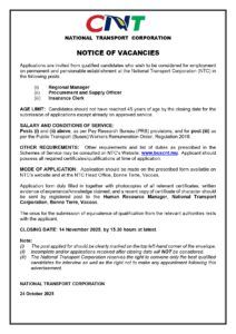 The National Transport Corporation (NTC) is inviting applications from qualified candidates for the following positions: